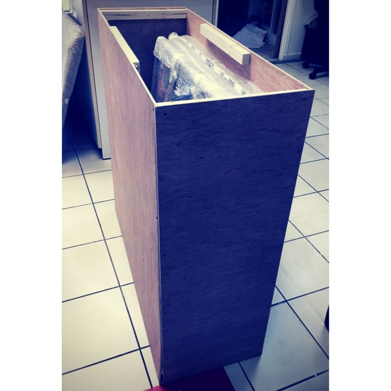 Création d'une caisse en bois sur mesure pour l'expédition de tableaux en France.