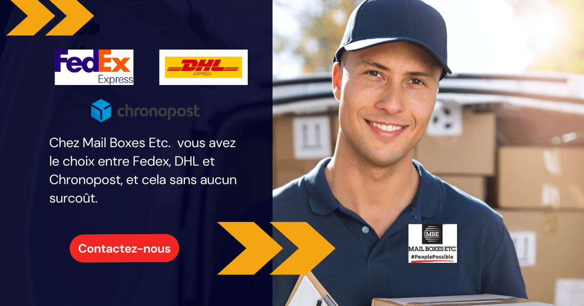 Avec MBE vous avez le choix entre plusieurs transporteurs de renommée mondiale (DHL, FedEx, Chronopost) et cela au même tarif*.